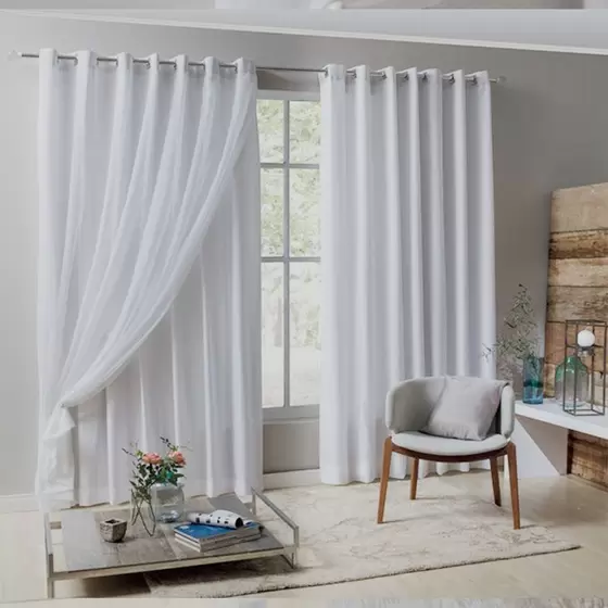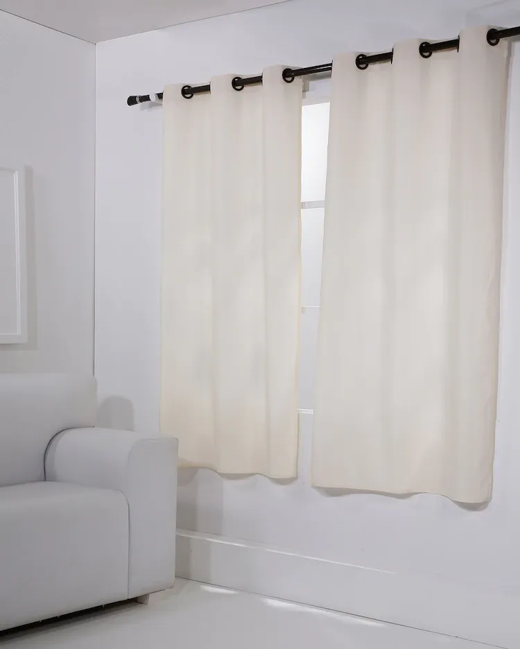 – A Cortina com Ilhós pode utilizar tecidos transparentes, translúcidos ou opacos (blackout), incluindo tecidos rústicos;